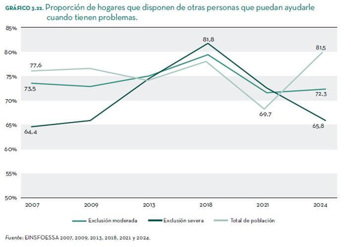 L’IX Informe FOESSA assenyala que malgrat les dificultats que afronten diàriament les llars en exclusió severa, tres de cada quatre activen estratègies d’inclusió, és a dir, busquen ocupació, es formen, activen xarxes i ajusten despeses, però xoquen amb barreres estructurals, es topen amb dispositius fragmentats, amb recursos escassos i molt poc personalitzats. L’activació en aquestes llars va passar del 68% en 2021 al 77% en 2024.