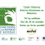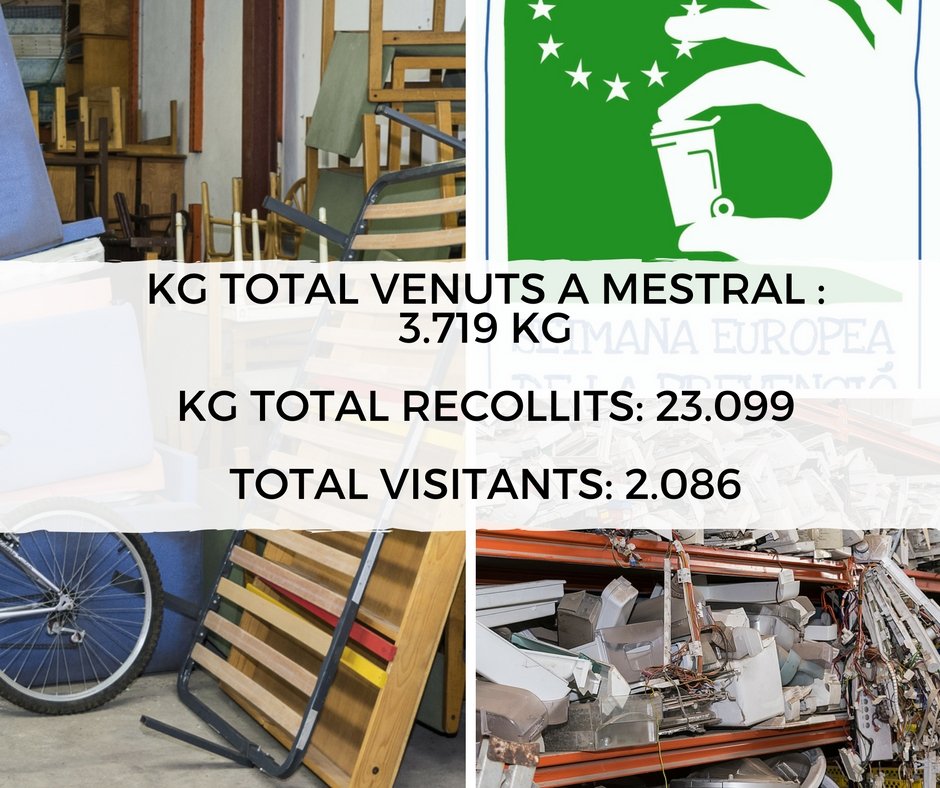 Durant la Setmana Europea de Prevenció de Residus, del 19 al 27 de novembre, Taller Mestral i TIV han participat en la campanya “Reutilitzar més, tirar menys”, centrada en comptabilitzar el pes dels materials reutilitzats (venuts com a segona mà). Aquesta campanya també s’ha dut a terme a 20 entitats d’arreu de l’Estat Espanyol, associades a AERESS (Asociación Española de Recuperadores de Economía Social y Solidaria), així com a d’altres a nivell europeu, associades a la xarxa europea RREUSE.